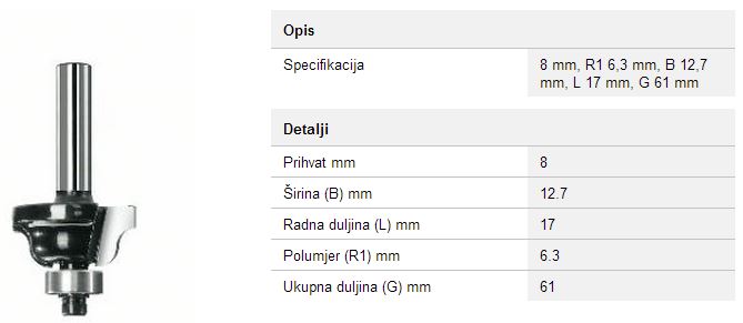 Glodalo profilno r6,3mm prihvat 8 dvorezno Bosch