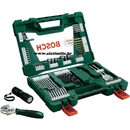 Set svrdala držač bita i bit nastavaka Bosch 83 djela, različitih svrdala, podesivi ključ, led svjetiljka i bit nastavaka u praktičnj kutiji Bosch. 2 607 017 193