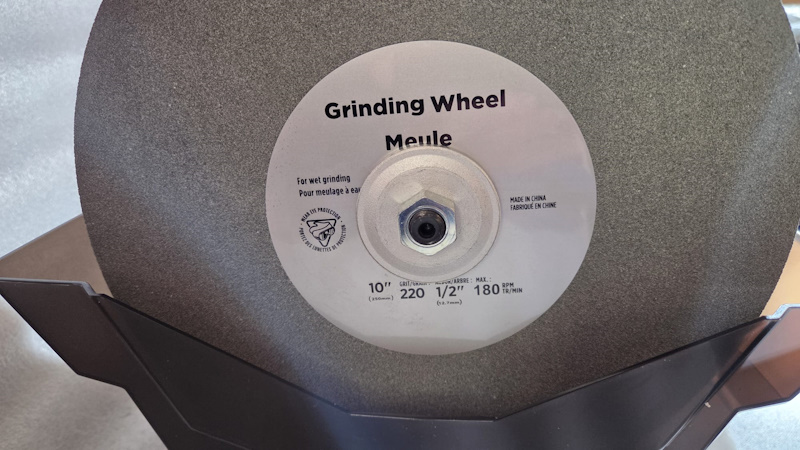 Oštrač noževa, sjekira i drugog reznog alata s vodenim brusnim kamenom visoke granulacije. Vrlo djelotvoran oštrač s mogućnošću regulacije brzine uz pripadajući abrazivni pribor