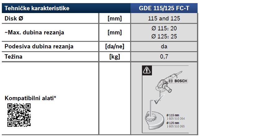 | Promjer diska [mm] | 115 / 125 |